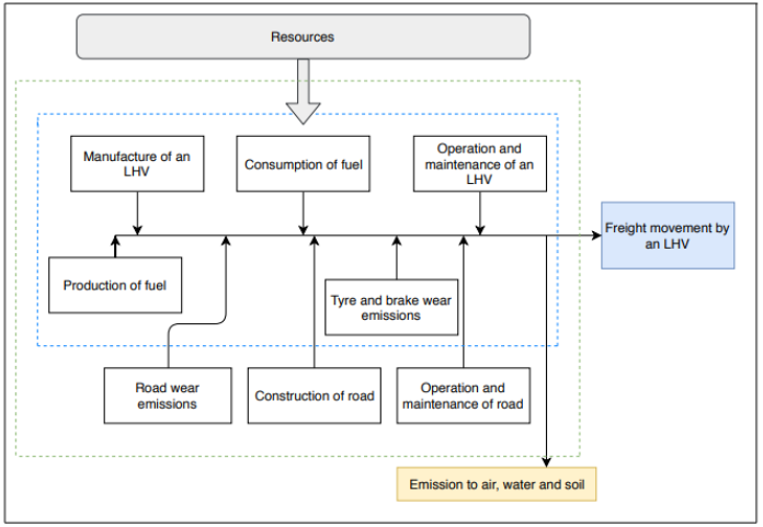 Zumindest hat man sich mal drüber Gedanken gemacht, welche materiellen Prozesse zur Produktion diverser Güter nötig sind: zb. Säen, Ernten, Bewässern etc, sowie die Ressourcen (zb Traktor), die dafür wieder nötig sind - und natürlich kann man für die Ressourcen selber wieder product systems machen (glaube ich). Kann sein, dass die Perspektive, nämlich die Nachhaltigkeitskennzahlen zu berechnen, dabei wichtige Dinge außer Acht lässt, die man bedenken müsste, wenn man daran interessiert ist, einen Kooperationsplan aufzustellen.